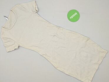 Sukienka dzianinowa midi w kolorze beżowym. - Krój: prosty, lekko dopasowany, z pionowymi cięciami modelującymi sylwetkę z przodu i z tyłu - Rękaw: krótki - Dekolt: okrągły - Długość: za kolano (m...