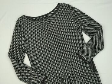Sukienka dzianinowa z długim rękawem, w odcieniach czerni i bieli. Model o prostym kroju, z kontrastowymi panelami: - przód i część tyłu z dekoracyjną, wypukłą fakturą w kwiatowy/geometr. motyw, - ...