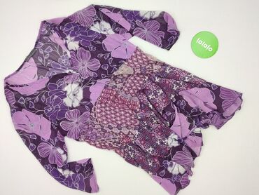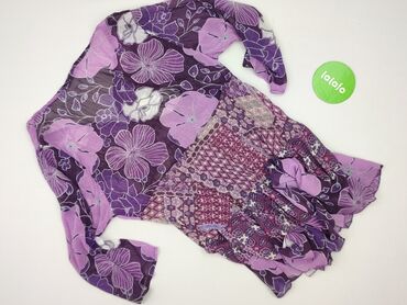 Sukienka CASSANI, rozmiar 38. - Krój: mini, dopasowana w talii szerokim, elastycznym pasem w kolorze ciemnego fioletu; dekolt w serek z lamówką w tym samym kolorze. - Rękawy: 3/4 z lekkim marszcze...