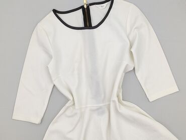 Biała sukienka o prostym kroju - Kolor: śmietankowa biel - Fason: dopasowany, delikatnie taliowany, długość mini/tuż przed kolano - Rękawy: 3/4 - Dekolt: łódka - Zapięcie: suwak z tyłu - Materiał:...