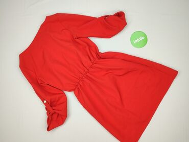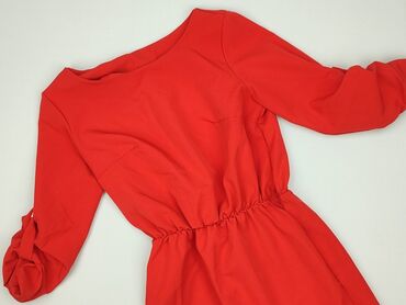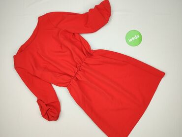 Sukienka damska w kolorze intensywnej czerwieni. - Fason: lekko rozszerzana (A-line), długość mini/przed kolano. - Rękawy: 3/4 z falbanką przy mankiecie. - Dekolt: okrągły. - Zapięcie: suwak z tył...