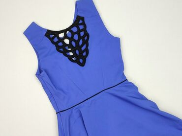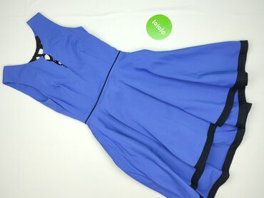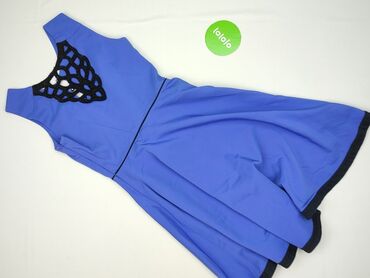 Sukienka koktajlowa Why Not, rozmiar 44. - Kolor: kobaltowy z czarnymi wstawkami - Fason: dopasowany, długość przed kolano - Dekolt: ozdobny kołnierz z czarnymi koralikami - Góra: transparentna cz...