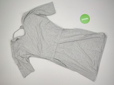 Szara sukienka dzianinowa z krótkim rękawem - Fason: prosta, dopasowana do sylwetki, długość do kolan/za kolano - Rękawy: krótkie - Dekolt: okrągły - Kolor: jasny szary melanż - Materiał: miękka, ...Stan: