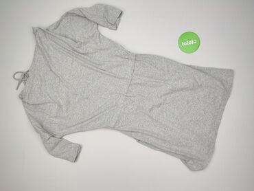 Szara sukienka dzianinowa z dekoltem wiązanym na karku - Krój: dopasowany, tubowy - Rękawy: 3/4 - Dekolt: łódka z ozdobnym wiązaniem z tyłu (sznureczki do zawiązania) - Długość: przed kolano/za ko...