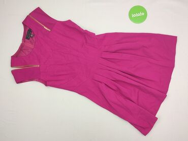 Sukienka damska w kolorze pudrowego różu, rozmiar S. - Krój: dopasowana góra z modelującymi cięciami, od talii rozkloszowany dół z kontrafałdami. - Rękaw: krótki. - Dekolt: okrągły. - Zapięcie: dł...