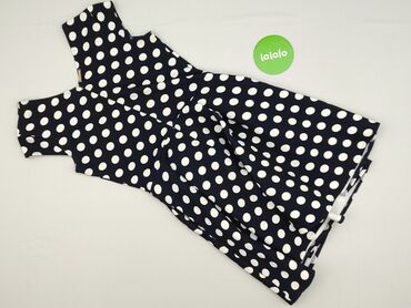 Granatowy kombinezon w białe grochy - Krój: długie nogawki, góra bez rękawów z falbanką na ramionach. - Talia: szerokie, elastyczne marszczenie podkreślające sylwetkę. - Zapięcie: suwak z tyłu. - ...
