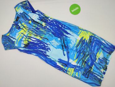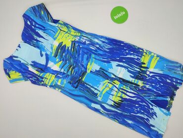 Sukienka damska z krótkim rękawem w intensywny, akwarelowy print (odcienie niebieskiego, granatu, bieli, różu i fioletu). - Fason: prosta tubowa/kolumnowa, długość do kolan lub lekko przed kolano ...