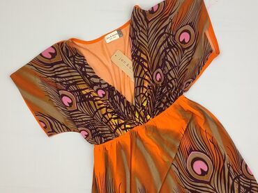 Sukienka Apricot – rozmiar S - Fason: długa, lekko rozszerzana, na cienkich ramiączkach - Materiał: 100% poliester (metka w środku) - Wzór: intensywny, wielobarwny nadruk inspirowany piórami pawia...