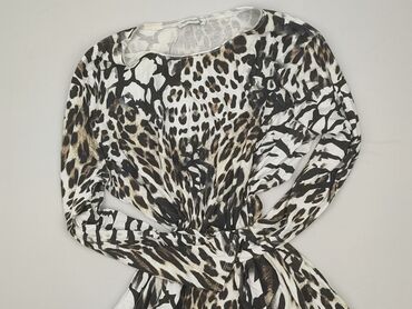 Sukienka/sweter dzianinowy z motywem panterki - Fason: dzianinowa sukienka swetrowa z głębszym dekoltem w serek, długie rękawy, ściągacze przy mankietach i dole. - Kolorystyka: góra w kolorze mors...Stan:
