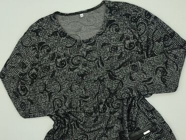 Sukienka/tunika damska z długim rękawem, rozmiar XL. - Kolor bazowy: czarny - Wstawki w kwiatowy wzór w odcieniach rdzawego różu, zieleni i bieli: na karczku, części rękawów oraz na dole sukienki ...