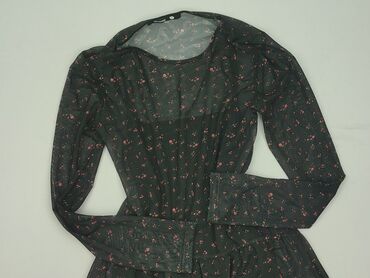 Czarna sukienka mini z długim rękawem - Wzór: subtelne, tłoczone motywy okularów na całej powierzchni - Krój: lekko rozkloszowany dół, odcięcie/zmarszczenie w talii podkreślające sylwetkę - Dekolt:...Stan: