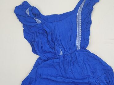 Sukienka damska bez rękawów w kolorze intensywnego kobaltu. - Fason: lekko rozkloszowany dół, dopasowana góra z dekoltem w serek. - Detale: falbanki przy ramionach i na przodzie, wstawki z koronką...Stan: