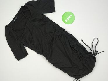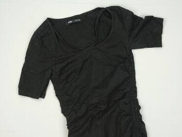 Czarna, prążkowana sukienka basic Sinsay - Damska, z krótkim rękawem - Fason: dopasowany, długość przed kolano - Dekolt: zaokrąglony - Rozmiar z metki: XXS - Materiał: 95% bawełna + elastan (rozcią...