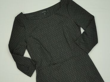 Sukienka damska Comma, rozmiar 40 - Fason: ołówkowy z baskinką w talii, podkreślający sylwetkę - Góra: czarno‑biały, drobny geometryczny wzór; dekolt półokrągły; rękaw 3/4 - Dół: gładka, czarna sp...