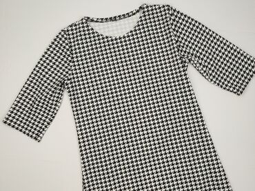 Sukienka damska z długim rękawem - Krój: dopasowany, mini, z okrągłym dekoltem - Wzór: klasyczna pepitka (czarno-biała) na panelu przednim; tył i rękawy gładkie, czarne - Materiał: elastyczna dzian...