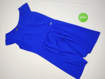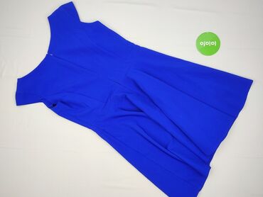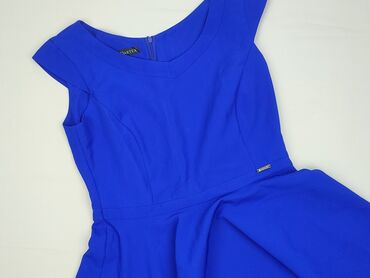 Sukienka damska, kolor kobaltowy (chabrowy), rozmiar S. - Krój: dopasowana góra, rozkloszowany dół. - Rękaw: krótki. - Dekolt: okrągły. - Materiał: elastyczna dzianina z tłoczonym, roślinnym wzorem...