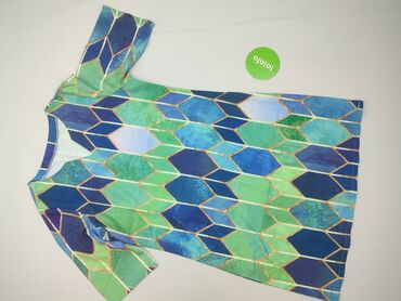 Sukienka damska z kolorowym, geometrycznym nadrukiem - Krój: prosta, lekko rozszerzana ku dołowi (tuba/trapez), długość przed kolano - Dekolt: okrągły z małym wycięciem i zapięciem na guzik z tyłu...
