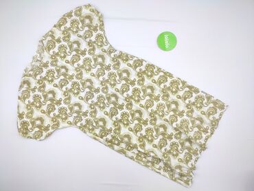 Sukienka damska o luźnym kroju, z krótkim rękawem. Tkanina lekka, przewiewna, w kwiatowo‑paisleyowy print w odcieniach żółci, różu, czerwieni i zieleni. Dekolt w kształcie litery V z wąskim, dekora...