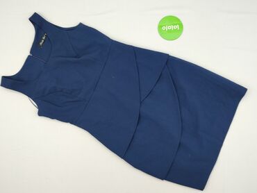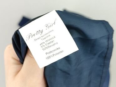 Granatowa sukienka marki Pretty Girl - Fason: dopasowany, ołówkowy, bez rękawów - Długość: do kolan - Kolor: ciemny granat - Kołnierz: szeroki, dekoracyjny z zakładką - Zapięcie: suwak z tyłu - Pa...