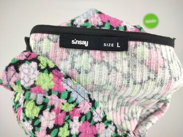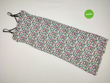 Sukienka damska Sinsay, rozmiar S - Fason: hiszpanka – odkryte ramiona z falbaną u góry - Wzór: tropikalny nadruk w liście i kwiaty (zieleń, róż, biały, niebieski) na granatowym tle - Długość: min...