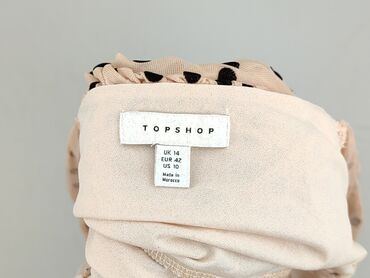 Sukienka Topshop w grochy - Marka: Topshop - Rozmiar z metki: EU 40 / US 8 / UK 12 - Kolor: granatowy w kobaltowe grochy - Fason: rozkloszowana spódnica z kontrafałdami, talia podkreślona marszcze...