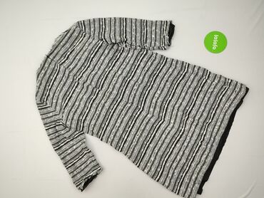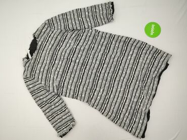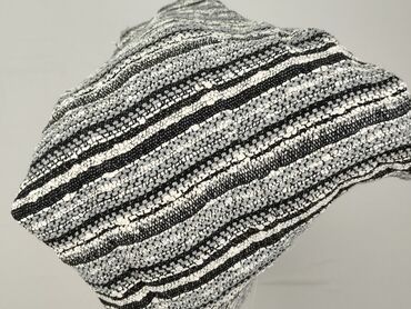 - Kolor/Wzór: czarno‑szaro‑białe pasy, fakturowana tkanina typu bouclé