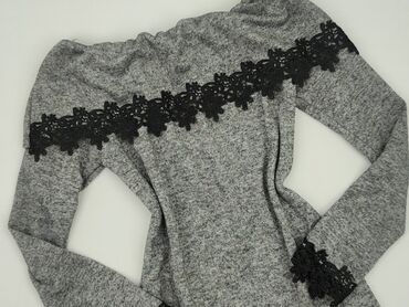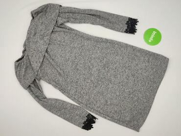 Dzianinowa sukienka z długim rękawem i dekoltem typu hiszpanka (gumka w górnej krawędzi). - Kolor: jasnoszary/melange - Fason: dopasowany, długość mini/przed kolano - Struktura materiału: prążkowa...