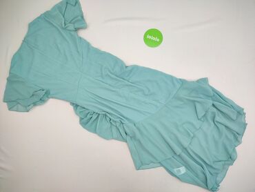 Sukienka damska w kolorze turkusowym z krótkim rękawem i okrągłym dekoltem. Górna część sukienki jest gładka, natomiast rozkloszowana spódnica ozdobiona jest wzorem w duże kwiaty w odcieniach fiole...