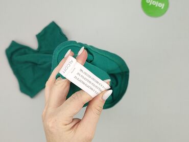 Bluzka damska w kolorze oliwkowej zieleni - Fason: luźny, z zaokrąglonym dołem, raglanowe rękawy z delikatnym marszczeniem przy ramionach; krótkie, szerokie rękawy typu motylek - Dekolt: okrągły, ...