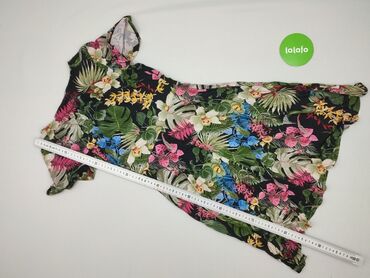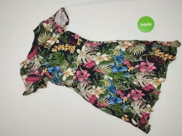 Sukienka damska z tropikalnym printem - Fason: luźna, lekko rozszerzana, długość midi (ok. kolano/za kolano – na zdjęciu z miarką ok. 95–100 cm) - Dekolt: kopertowy w kształcie V - Ramiączka: szer...Stan: