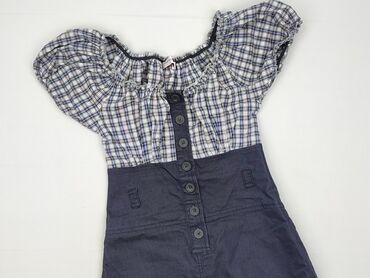 - Fason: dopasowana, odcięta w talii; góra z elastyczną, marszczoną gumką przy dekolcie (hiszpanka) i krótkimi bufiastymi rękawkami; dół ołówkowy.