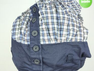 - Wzór i kolor: góra w drobną kratkę (odcienie niebieskiego, bieli i beżu), dół gładki w kolorze granatowym.