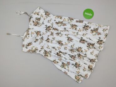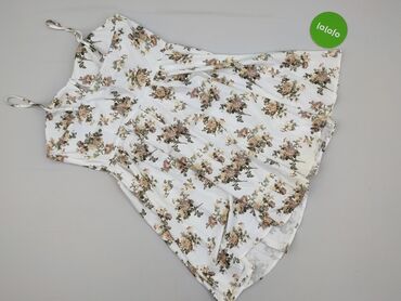 Letnia sukienka mini w kwiaty - Krój: bez rękawów, dopasowana góra, rozkloszowany dół - Dekolt: z ozdobnym wycięciem z tyłu - Ramiączka: cienkie, regulowane, z metalowymi złotymi łańcuszkami - Wzó...