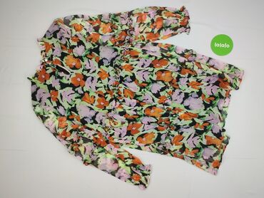 - Kolorystyka: wielobarwny, kwiatowy print na czarnym tle (odcienie pomarańczu, lila i jasnej zieleni)