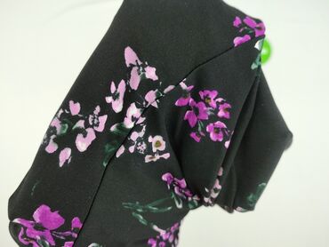 - Wzór: kwiatowy, na czarnym tle (odcienie fioletu i różu, zielone listki)