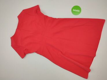 Czerwona sukienka A|wear - Rozmiar z metki: 14 / 42 - Fason: prosta, do kolan, krótki rękaw - Dekolt okrągły z ozdobnymi plisowaniami z przodu i na karczku - Zamek błyskawiczny z tyłu (złoty) - Ma...