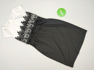 Czarna sukienka damska typu koktajlowego, rozmiar M. - Fason ołówkowy, długość do kolan - Góra z koronką o kwiatowym wzorze, szerokie ramiączka - W talii dekoracyjna kokarda - Dół gładki, elegancki...