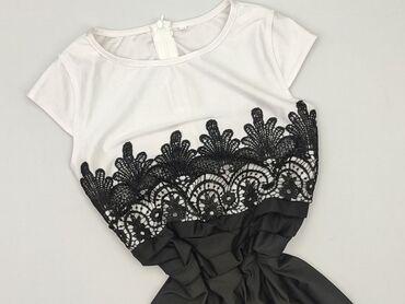 Sukienka damska bez rękawów, w odcieniach czerni, bieli i szarości. - Krótka, dopasowana forma. - Góra w kolorze czarnym z dekoracyjnymi aplikacjami kwiatowymi i koronkowym haftem przy dekolcie. ...