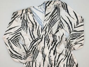 - Fason: mini z kopertowym dekoltem V i odcinaną talią.