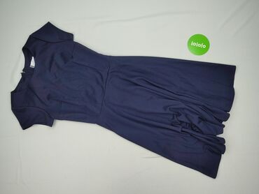 Granatowa sukienka Nife, rozmiar 38. - Krój: dopasowana góra z odcięciem w talii, rozkloszowany dół. Długie rękawy. Dekolt w kształcie litery V. - Zapięcie: kryty zamek na plecach. - Materiał (wg ...