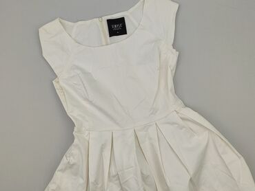 Sukienka damska, rozmiar M. Dwuczęściowy efekt: - góra: kremowa/śnieżnobiała koronka o kwiatowym wzorze, krótki rękaw, zaokrąglony dekolt, delikatne lamowanie przy krawędziach - dół: rozkloszowana ...