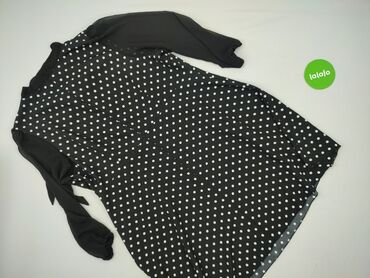 Idealna na co dzień, do biura lub na spotkania – ponadczasowy print w groszki i kobiecy krój. Etykiety z informacją o składzie i rozmiarze widoczne na zdjęciach.