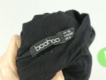 Czarna, prążkowana sukienka midi Boohoo. - Fason: dopasowany, długość midi, długi rękaw - Dekolt: okrągły - Materiał: 95% poliester, 5% elastan – elastyczna, miękka dzianina w pionowe prążki - Kol...