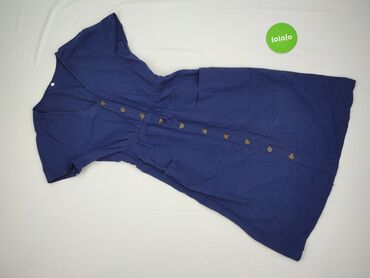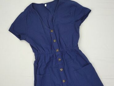 Granatowa sukienka Osiker - Fason: prosty, taliowany z delikatnym marszczeniem/ściągnięciem w pasie, rozszerzany dół - Dekolt: okrągły - Rękaw: krótki/kimonowy - Długość: do kolan (na zdjęciach wi...