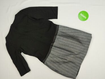 Sukienka damska F&F - Krój: ołówkowy, dwuczęściowy efekt – góra jak bluzka, dół jak spódnica. - Wzór i kolor: góra w czarno‑białą kratę (pepita/gingham), dół gładki czarny. - Rękaw: krótki. - Deko...