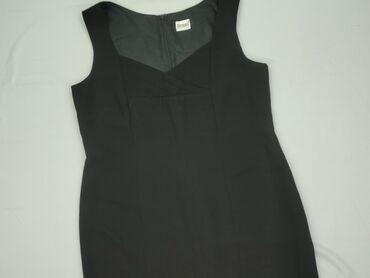 Czarna sukienka damska bez rękawów – klasyczna „little black dress” - Fason: dopasowany, ołówkowy, długość za kolano - Dekolt: głęboki, kwadratowy - Zapięcie: kryty zamek z tyłu - Materiał: gładka...