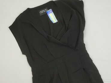 Czarna sukienka bez rękawów - Krój: dopasowana góra, od pasa delikatnie rozkloszowana spódnica z zakładkami - Dekolt: okrągły z przodu i z tyłu - Długość: przed kolano (mini) - Materiał: 65% polie...