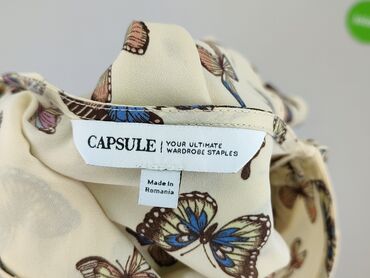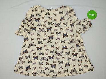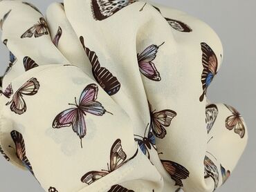 Bluzka damska z motywem motyli - Krój: luźna koszulowa bluzka z krótkim rękawem - Dekolt: w kształcie litery V, zapinana na guziki z przodu - Detale: elastyczne, marszczone wstawki (smocking) na w...