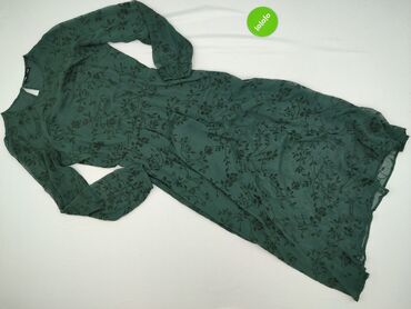 Sukienka Sinsay, rozmiar M - Długość midi - Kolor: butelkowa zieleń - Wzór: białe stokrotki z żółtym środkiem na całej powierzchni - Krój: lekko rozkloszowany dół, dopasowana góra z zaszewkami; wsz...