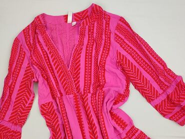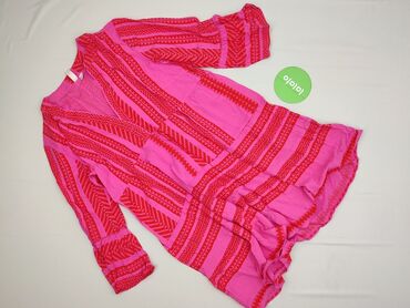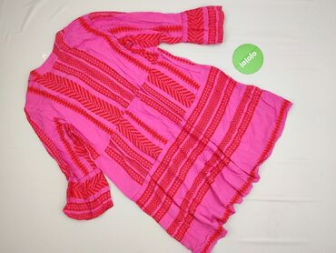 Sukienka RAINBOW - Krój: mini/tunika, lekko rozszerzana ku dołowi - Rękawy: długie z falbanką przy mankietach - Dekolt: wiązany sznurkiem z frędzlami - Wzór: paisley/kwiatowy w odcieniach różu na ...